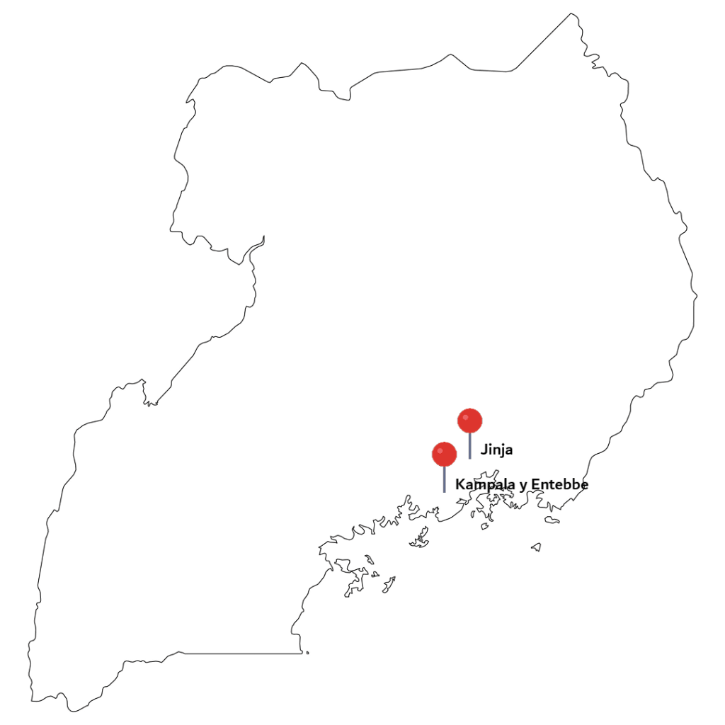 Uganda es un país rico en agua y Jinja la ciudad desde la que puedes gozar de este maravilloso elemento de la naturaleza. La Perla de África comparte con Kenia y Tanzania el lago más grande del continente Africano y el segundo más grande del mundo: el lago Victoria, o «Nnalubaale», en Luganda, una de las lenguas mayoritarias del país. Desde el lago nace uno de los dos afluentes del río más largo del mundo (depende de a quién preguntes), el Nilo Blanco, conocido con este nombre por los rápidos de sus aguas y los sedimentos que arrastra. El Nilo Azul nace en Etiopía y se encuentra con el Nilo Blanco en Sudán. Desde el lago y el río se pueden hacer muchas actividades y vivir infinitas aventuras.